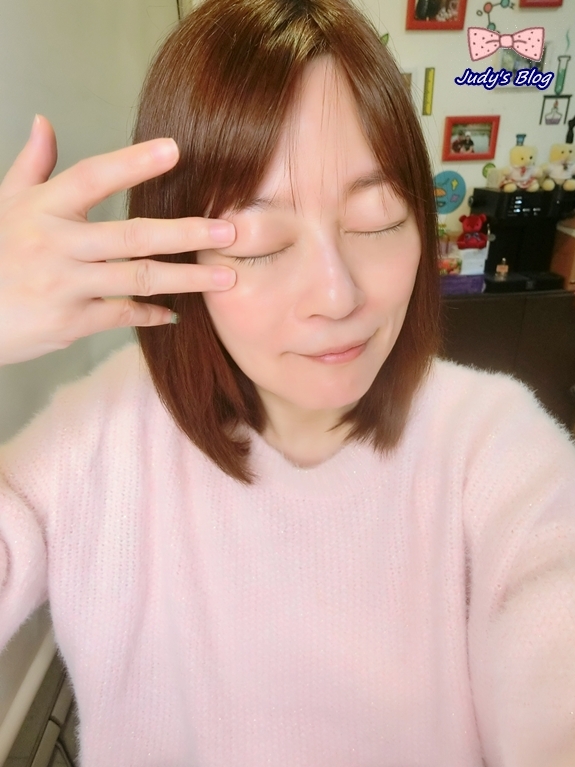 Judy老師會每日早晚在眼周上薄薄的擦上極致雙A緊緻提亮眼霜,再採用輕柔的點壓按摩方式來讓其眼周能充分吸收眼霜精華這樣。