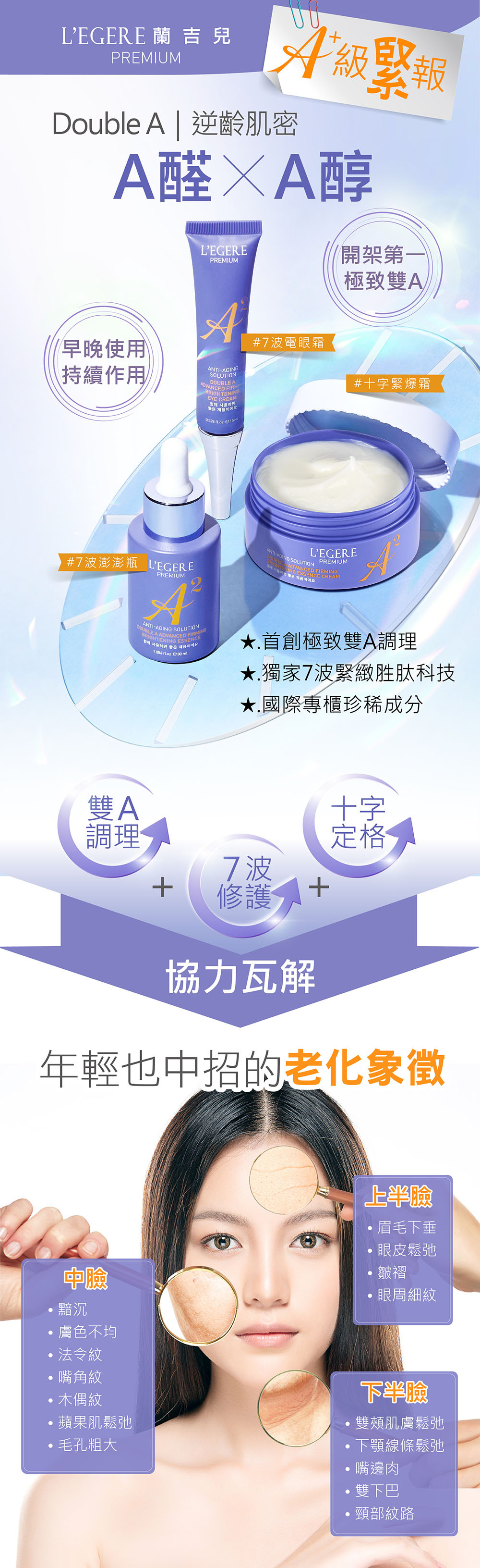 ✅抗老新星成分『極致A醛緊緻提亮因子』抵禦老化痕跡,煥活肌膚宛若新生