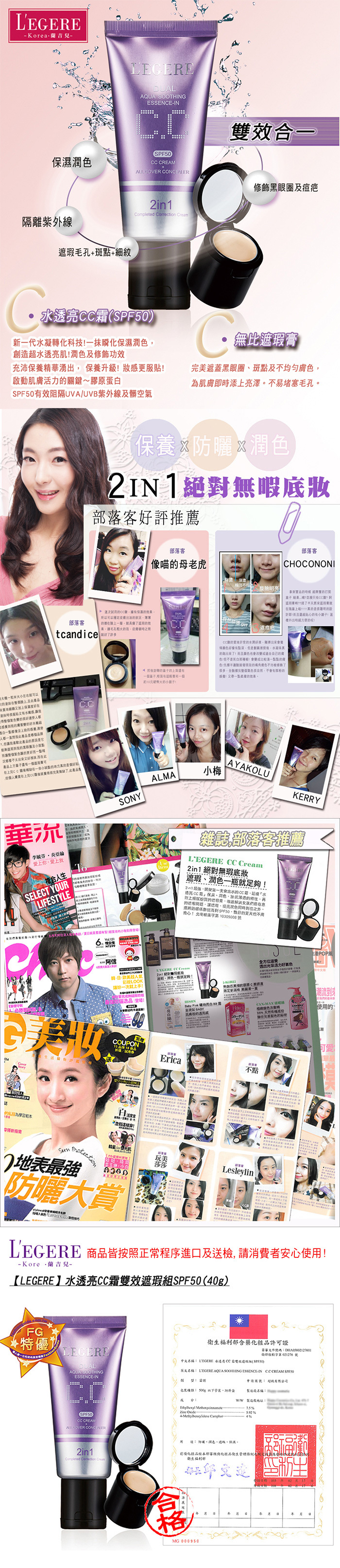 容量:CC霜45g+無比遮瑕膏2.5g(於CC霜本體上蓋扳開處)