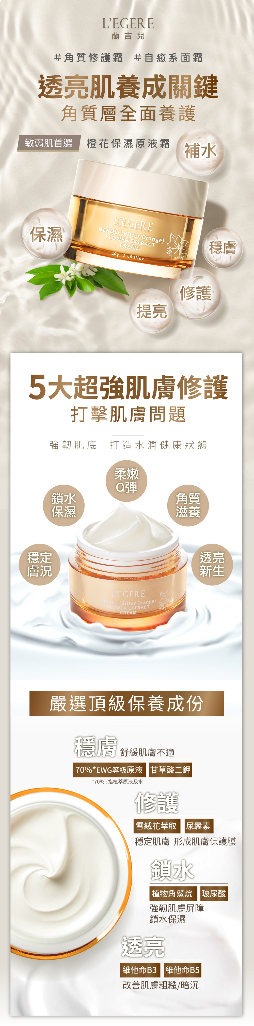橙花保濕,水潤滋養、保持肌膚水感透亮