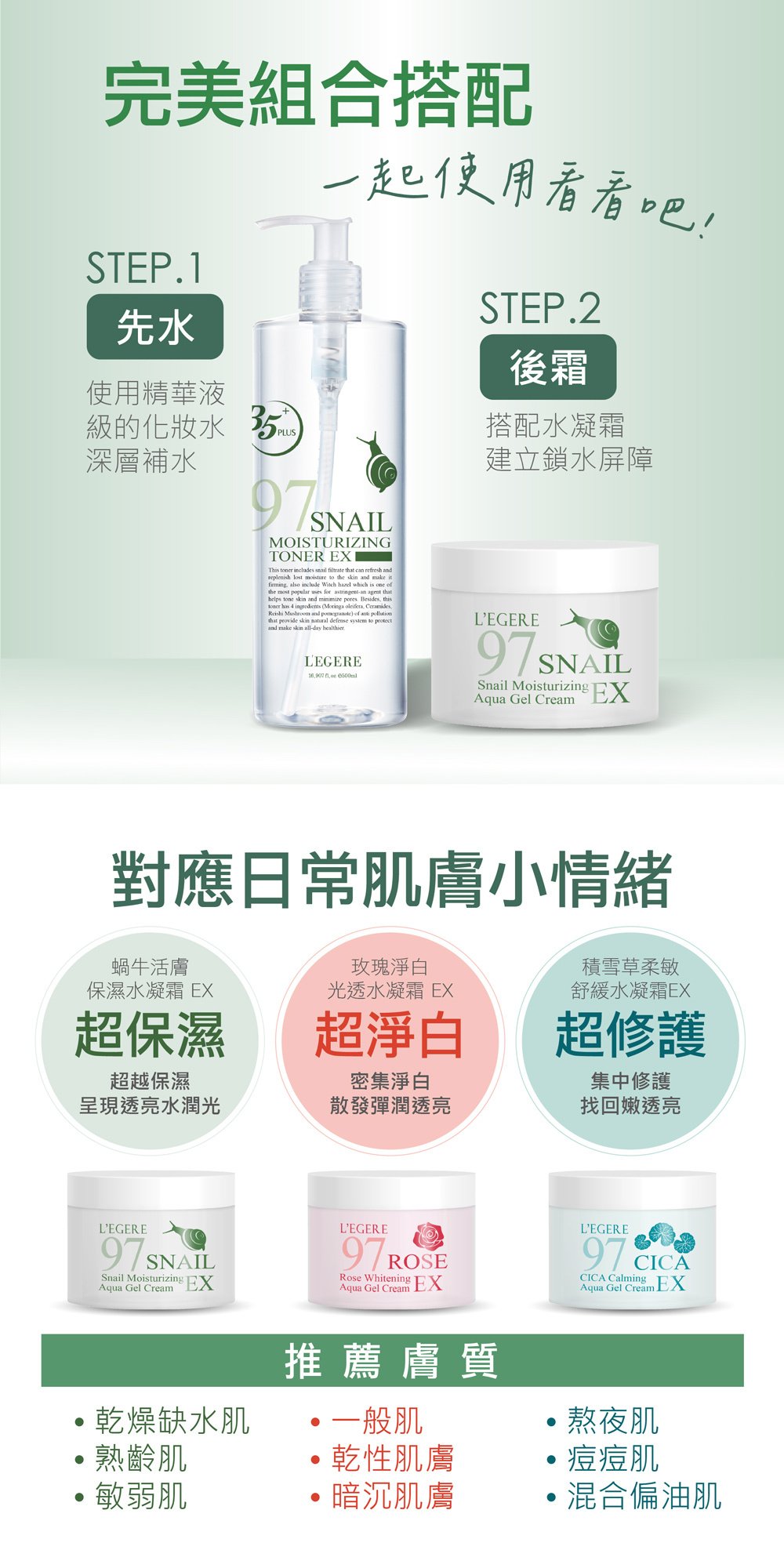 ■ 蝸牛:深層補水 × 澎潤修護 × 對抗老化