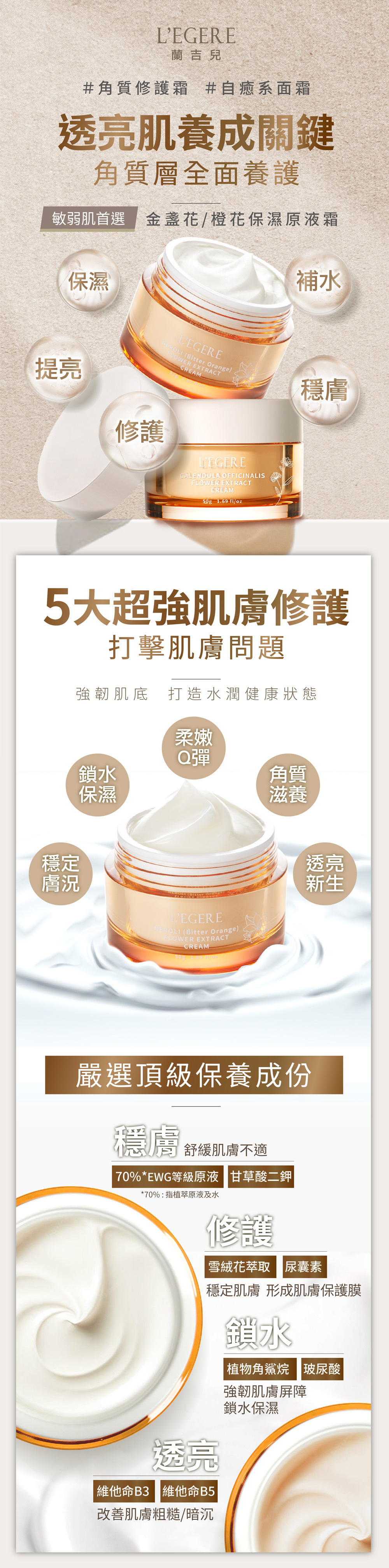 主商品:L'EGERE 原液霜 (金盞花舒緩/橙花保濕)