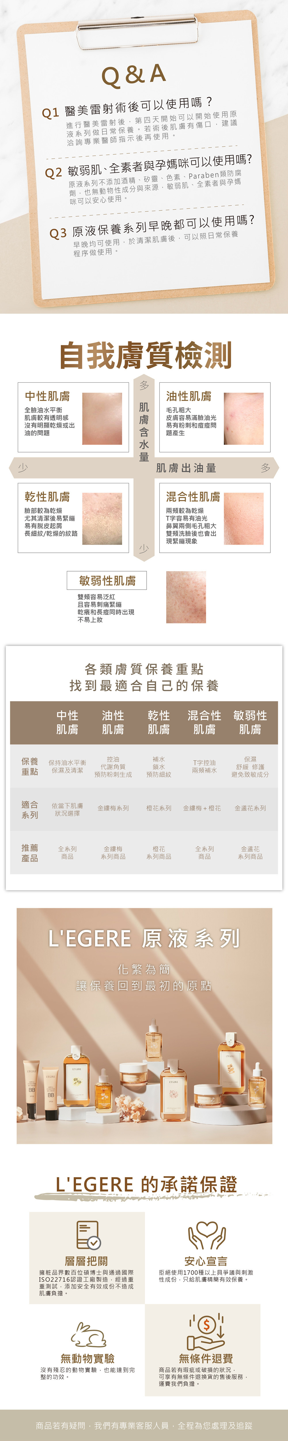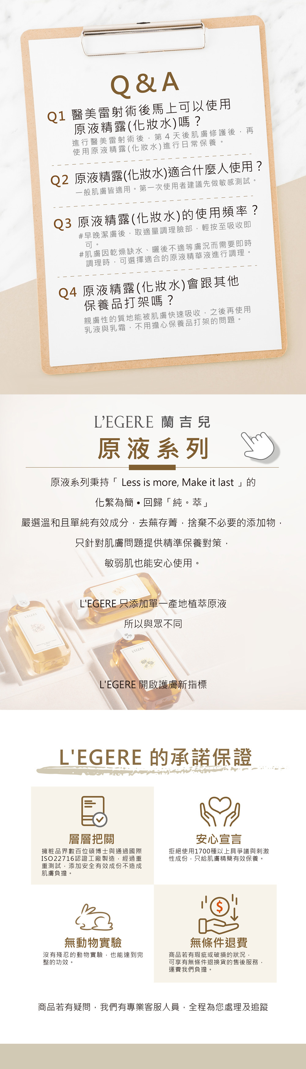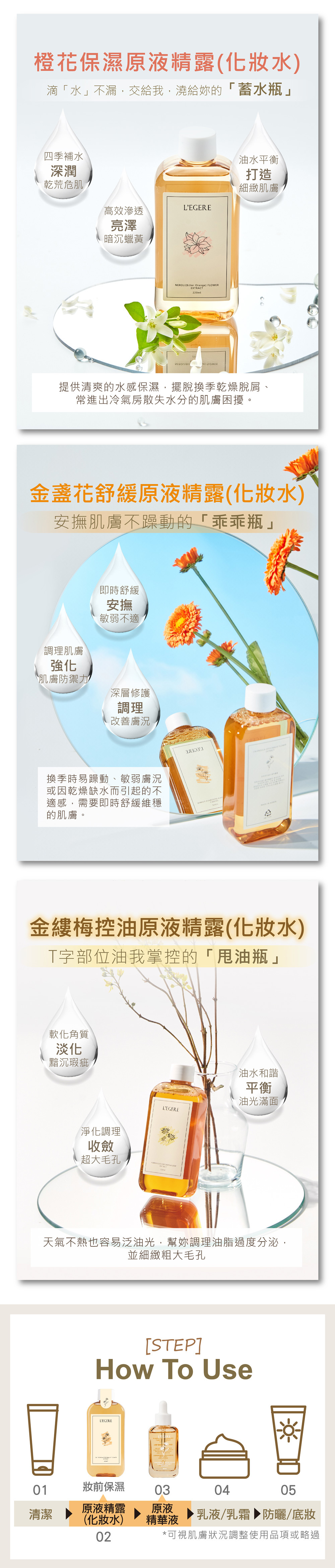 主商品:L'EGERE 原液精露(金盞花舒緩/金縷梅控油/橙花保濕)
